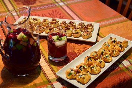 I’m a huge fan of sangria so I like to make a big batch of Cranberry Sangria to serve with the appetizers. Each sip is tart from the cranberry, spicy from the cinnamon, and sweet from the apple cider. Each glass is served with a cinnamon stick so the longer the sangria is in your glass the more it tastes like fall 😊